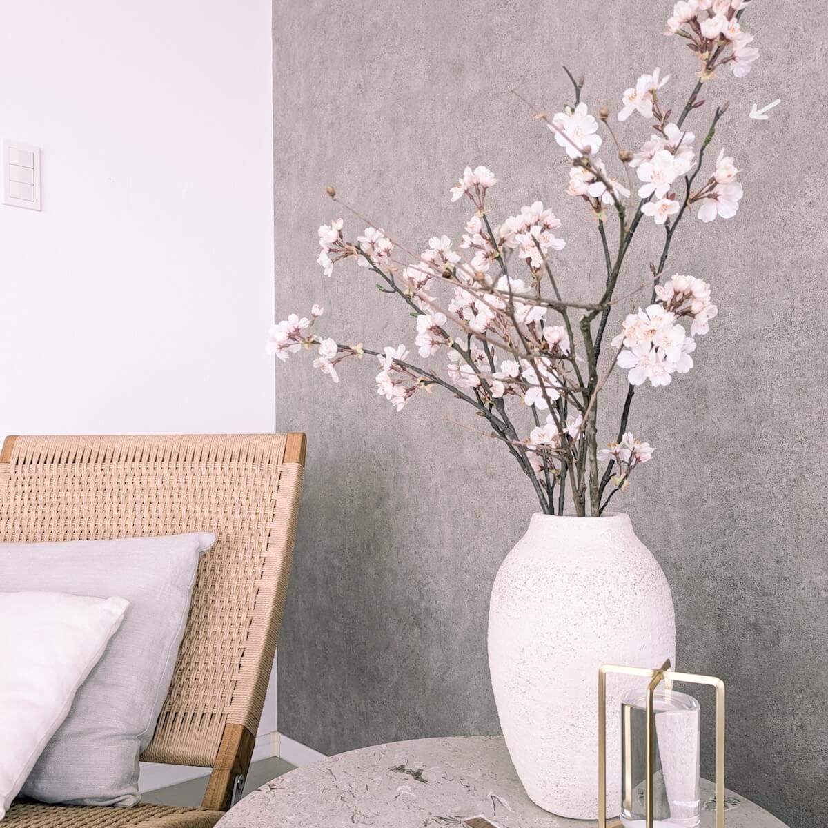 インテリアに加えると一気に垢ぬけてこなれた雰囲気にしてくれるお花や枝物。生花の美しさにはかなわないですが、造花のメリットもたくさんあるので、私は柔軟にインテリアに造花を取り入れることでコストを抑えています。