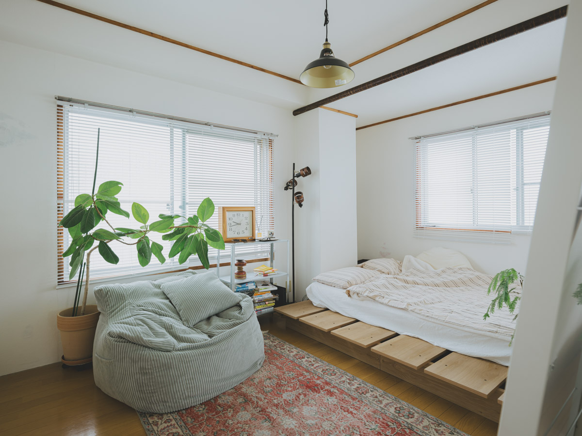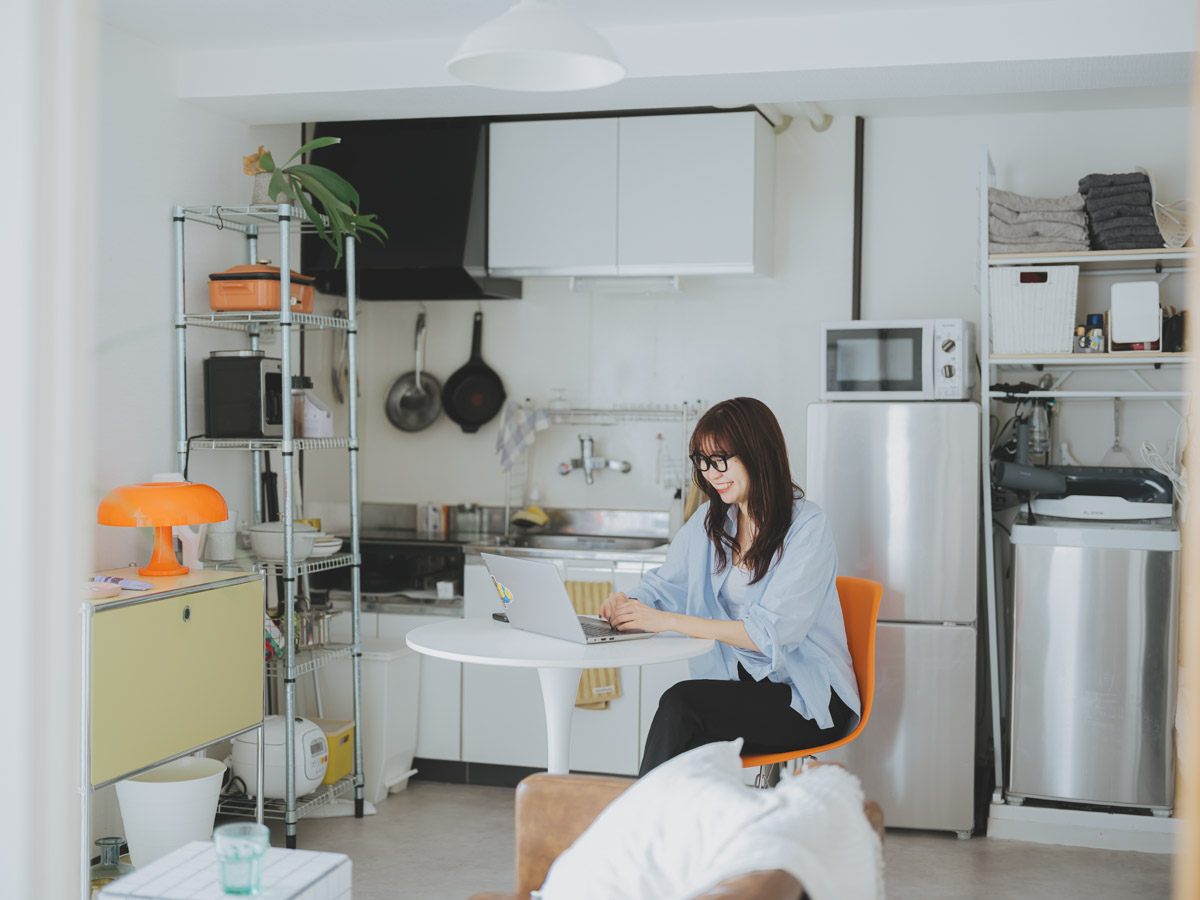 「家賃の安さと日当たりのよさに惹かれて決めました」と話す彼女は、在宅勤務ができる広さを条件に、寝室とリビングを分けられる1DKの間取りを選びました。