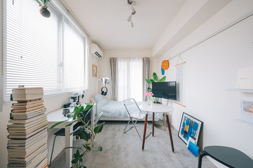 小さな1K・ワンルームのお部屋、どんなデスクを選び、どうやってレイアウトすればうまくいく?おしゃれなお部屋に住む人のデスクレイアウトの実例をまとめました。