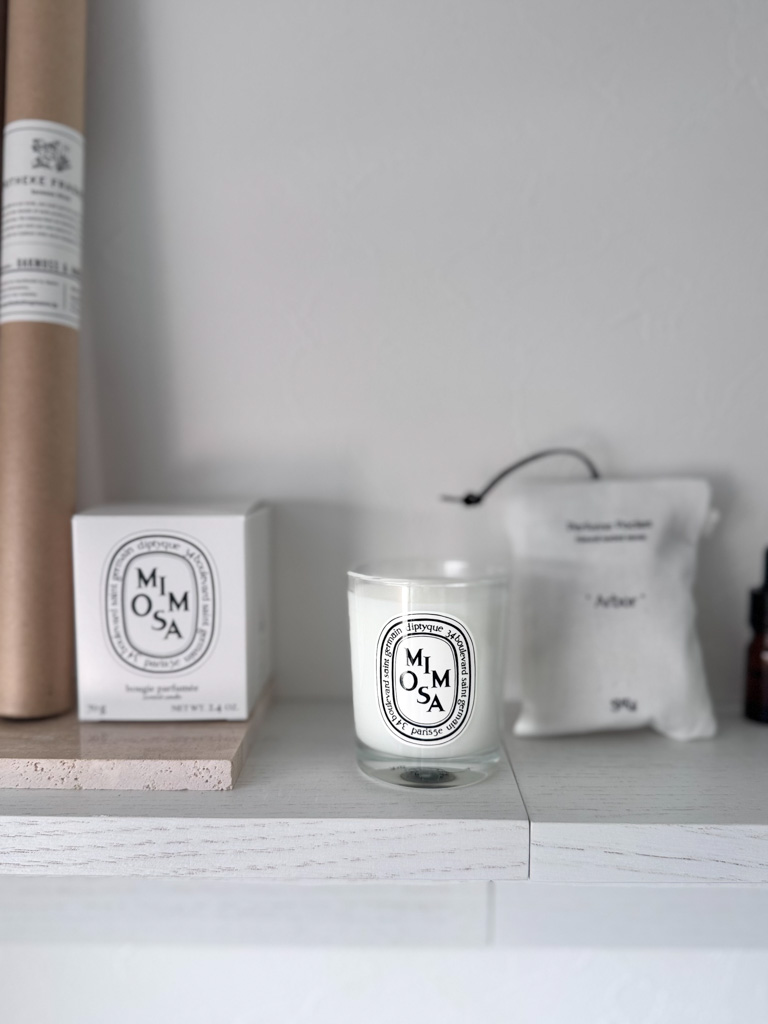 パッケージ、世界観……。隅々までに美意識がちりばめられている、大好きなブランドです。特にミモザの香りのキャンドルは、思い出がある香り。気分の切り替えになるので、香りのアイテムはいつも切らさないようにしています。