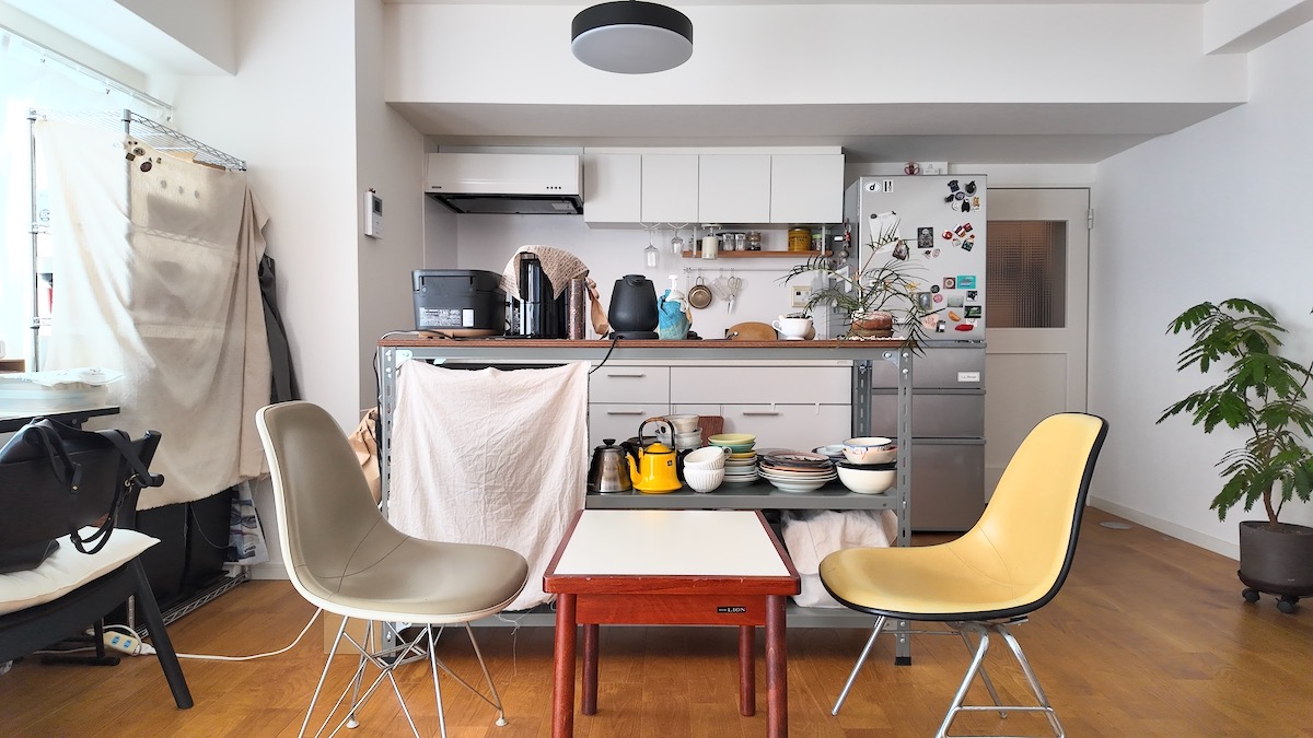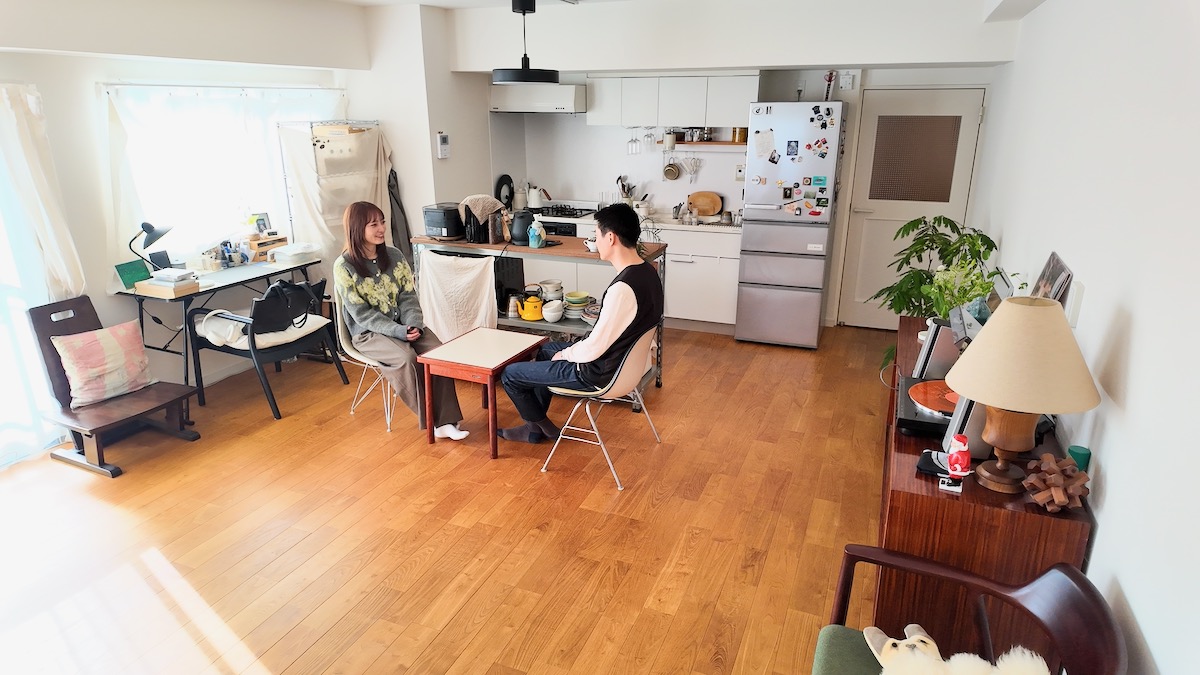 広島から東京へのお引越しで選ばれた、広々21畳のLDKが魅力のリノベーション賃貸のお部屋。好きで集めていらっしゃる小物や椅子など、二人の好きなものがいつでも目に入る、素敵な二人暮らしの1LDKを拝見しました。