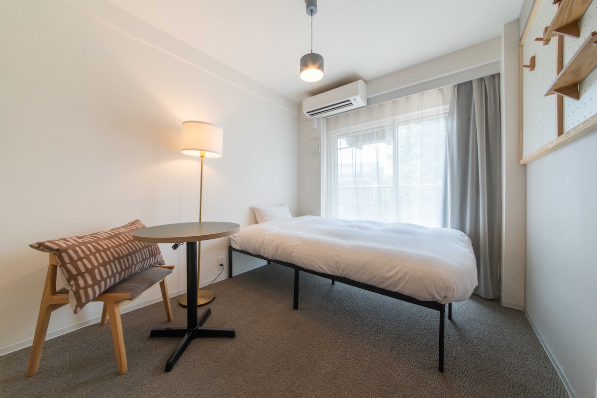個室にはベッドやデスク、冷蔵庫、洗濯機といった家具・家電も備え付けられているため、気軽に入居できます。