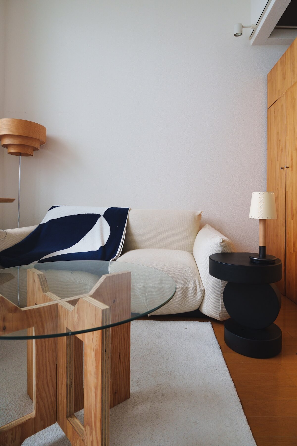 お気に入りのソファは arflex の MARENCO。背、シート、アームを別々に作って組み上げる製法により、張り替えやパーツ交換がしやすく、親から子へ受け継いで何年も愛用できるというストーリーに惹かれたのだそう。(このお部屋を見る)