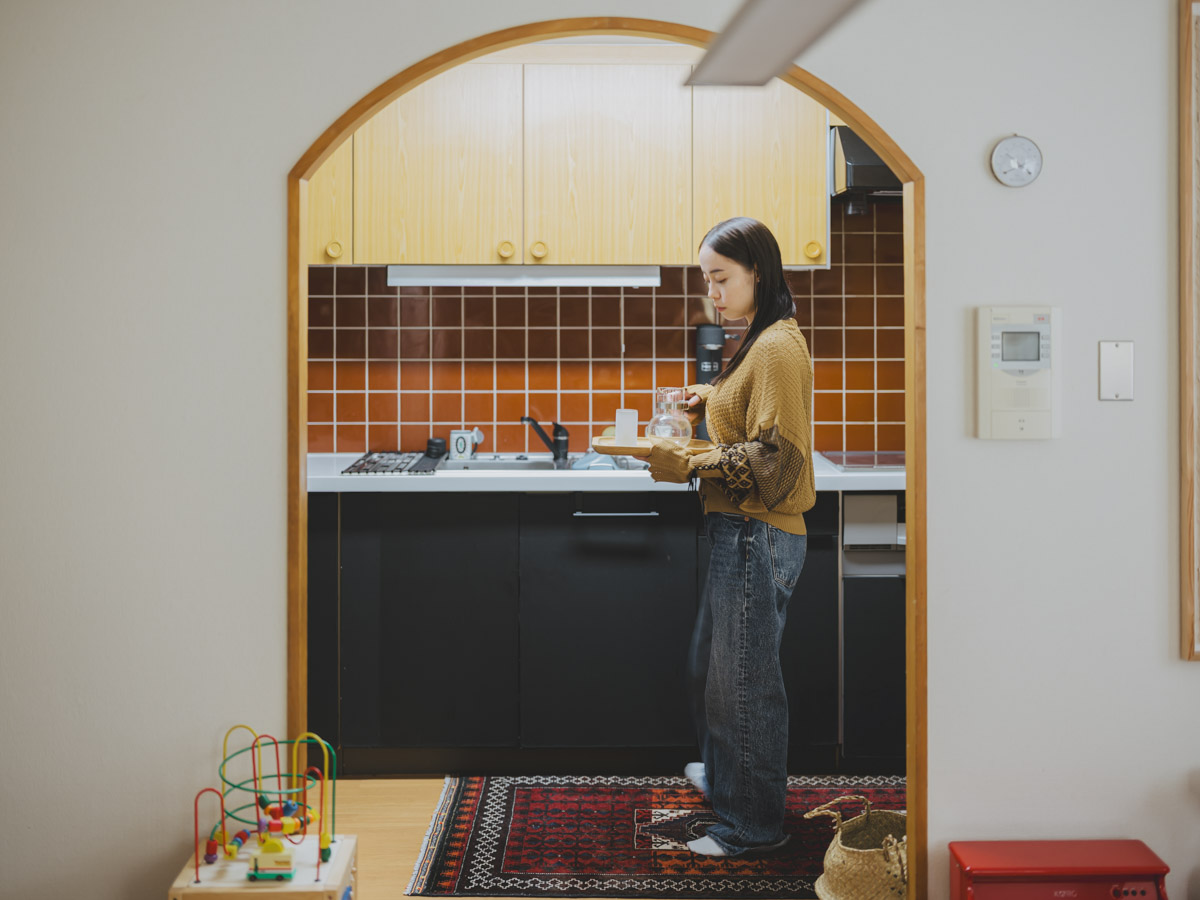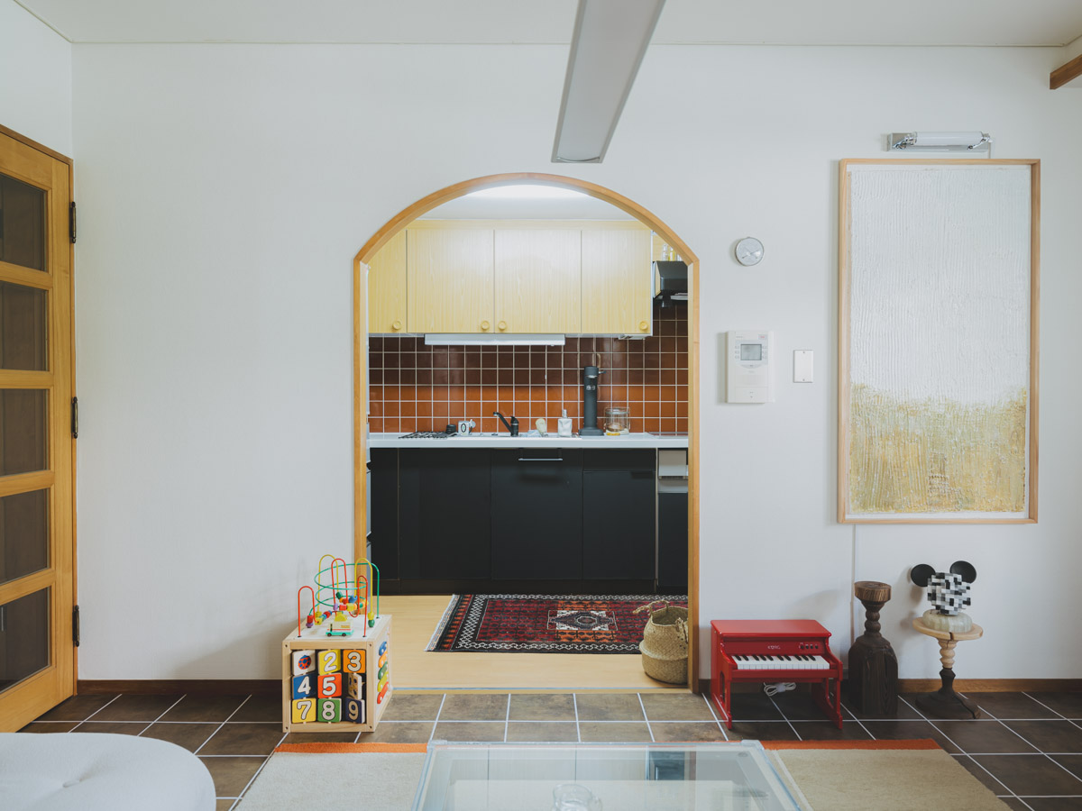 「広いキッチンは、家を選ぶ上で大きな決め手になりました」と語る通り、アールの入り口が印象的なキッチンは、長野さんの「好き」が詰まった場所でもあります。