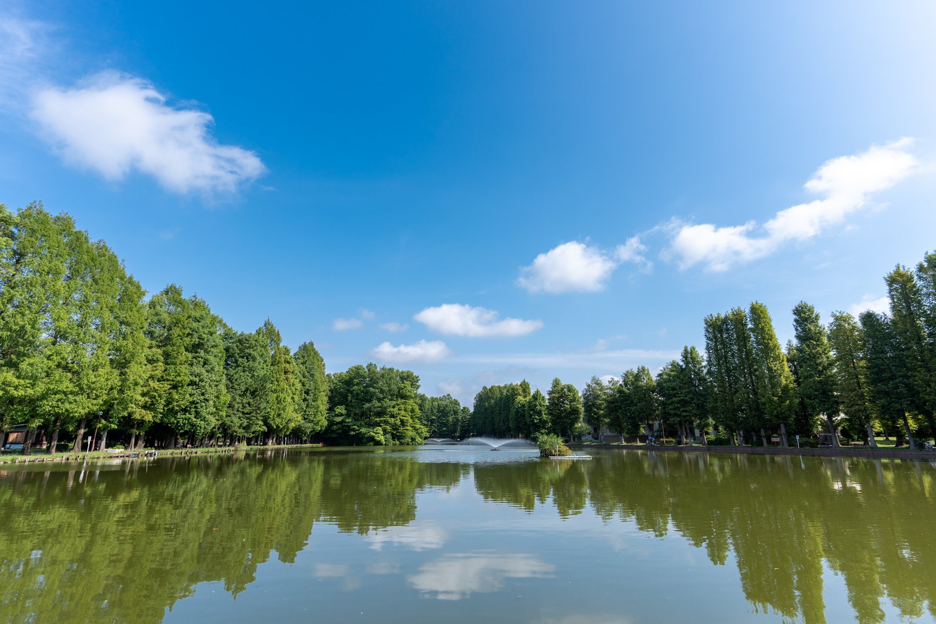 住宅街が広がっていて、近くには大きな公園もあります。家族連れの姿を見かけることも多く、穏やかな空気感がありますね。