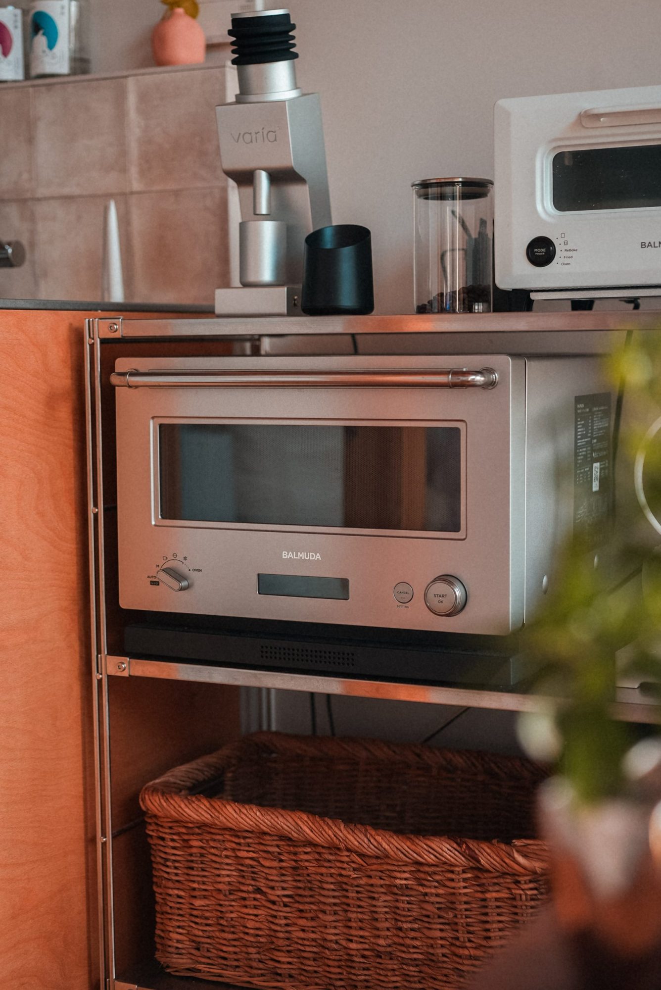 「レンジを買い替えるタイミングで「どうせなら毎日見るたびに気分が上がるものを」と思ったのが購入のきっかけです。スタイリッシュなシルバーカラーが、雑多になりがちな台所の空気を締めてくれる感じがします。操作音はギターの音色がしたり、ライトにも遊び心があったりとBALMUDAらしい製品で、毎日使うものにちょっとした特別を感じられるのが好きです」(このお部屋はこちら)