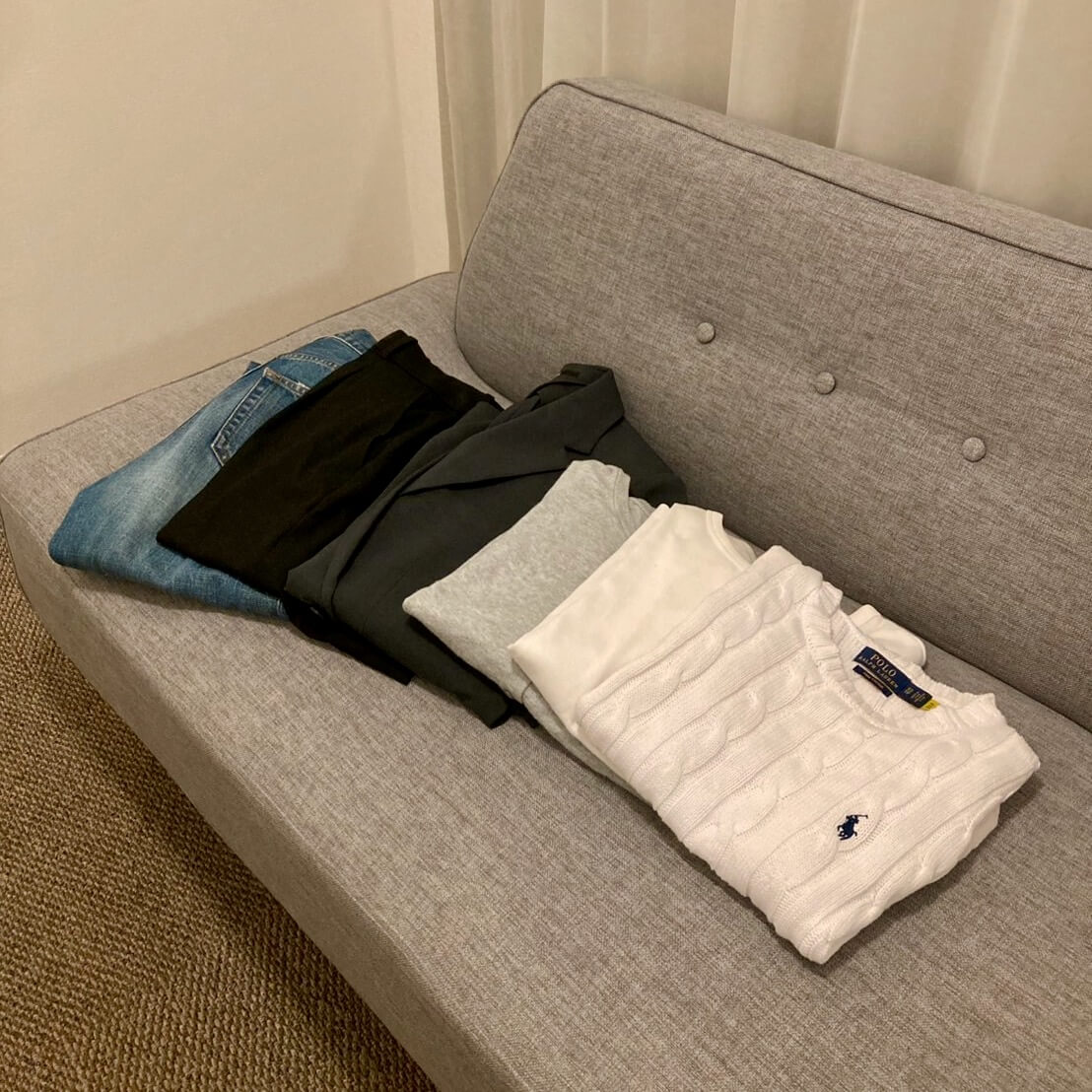 服を選ぶ基準を「デザイン」から「着回しやすさと質の良さ」に変えました。派手な色や柄物、1シーズンしか着られない流行服を買うのをやめ、無地でベーシックな色の服をベースにしています。その分、香水などのかさばらないアイテムで変化をつけるのが今の私のスタイルです。