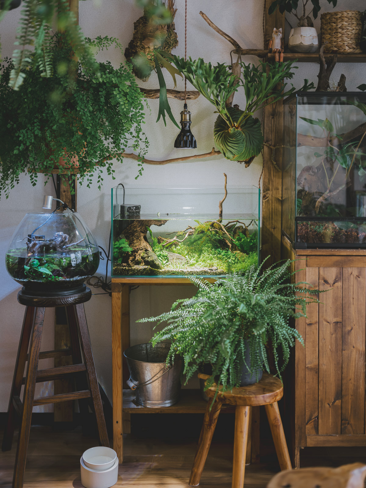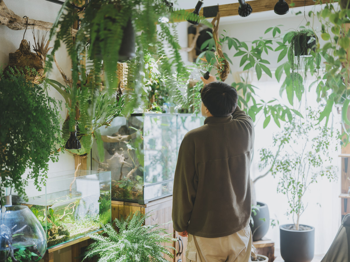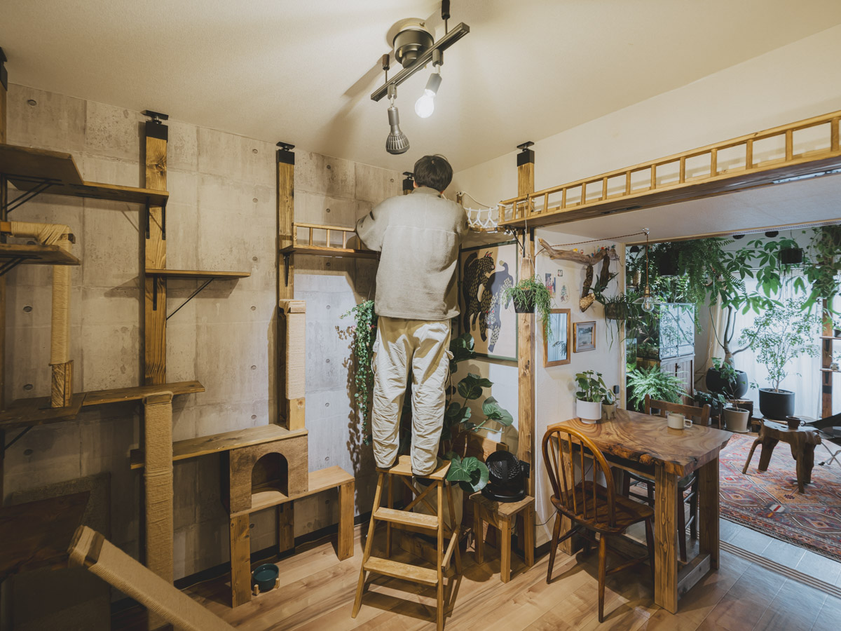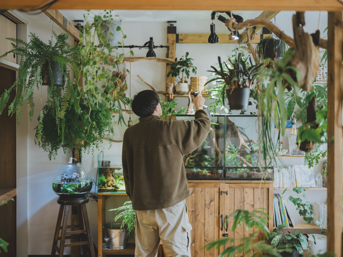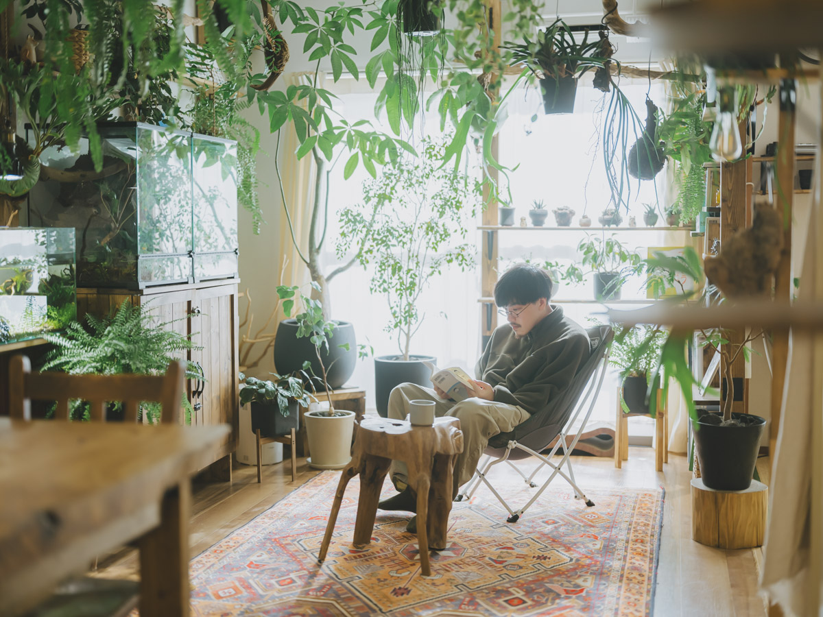 お互いの「好き」を尊重し合い、時に意見を交わしながら、生き物たちとの暮らしをDIYで柔軟に形づくっていく。お部屋の至る所から、お二人の穏やかで温かな暮らしの息遣いが感じられる、愛情にあふれた素敵な住まいでした。