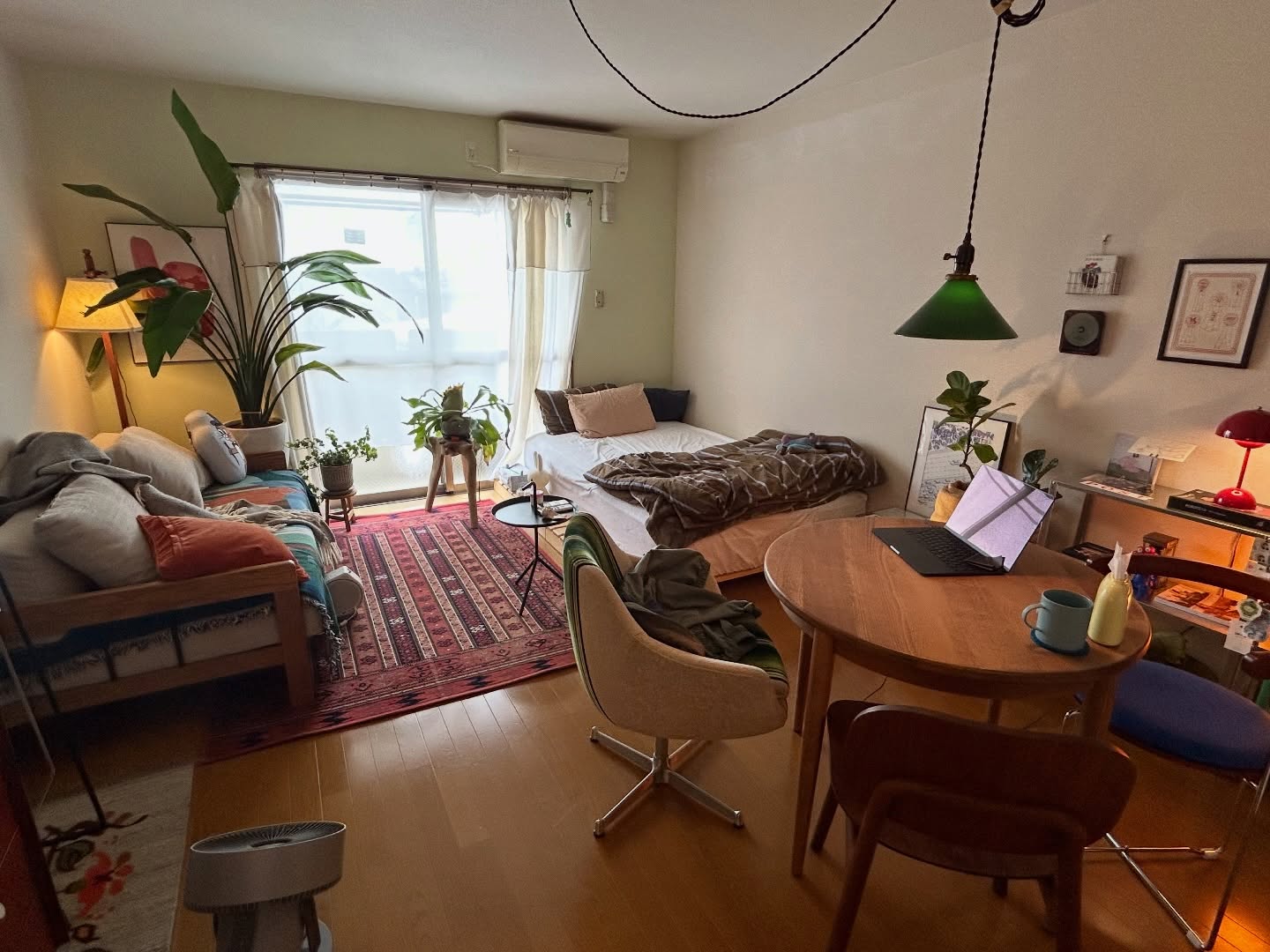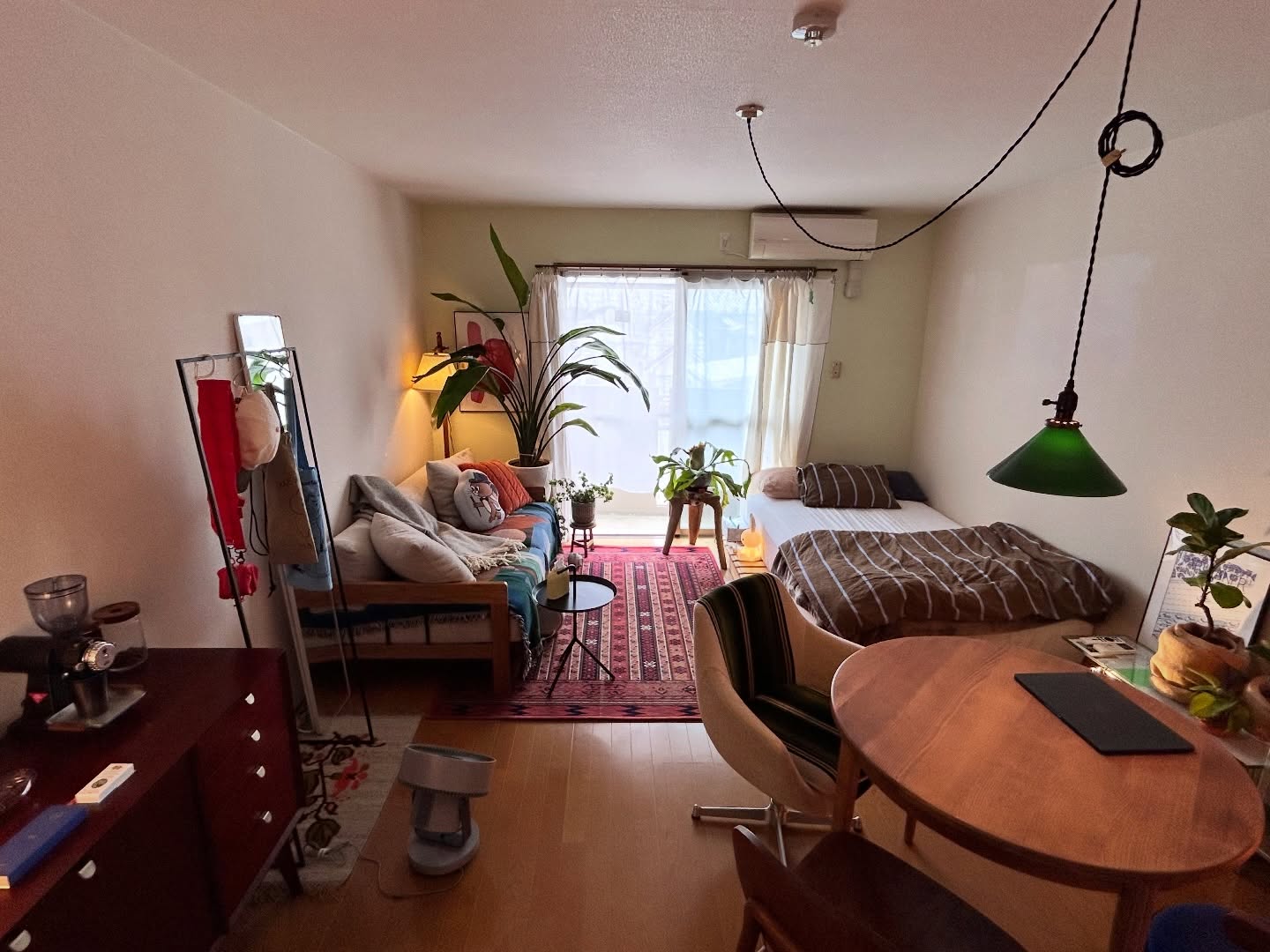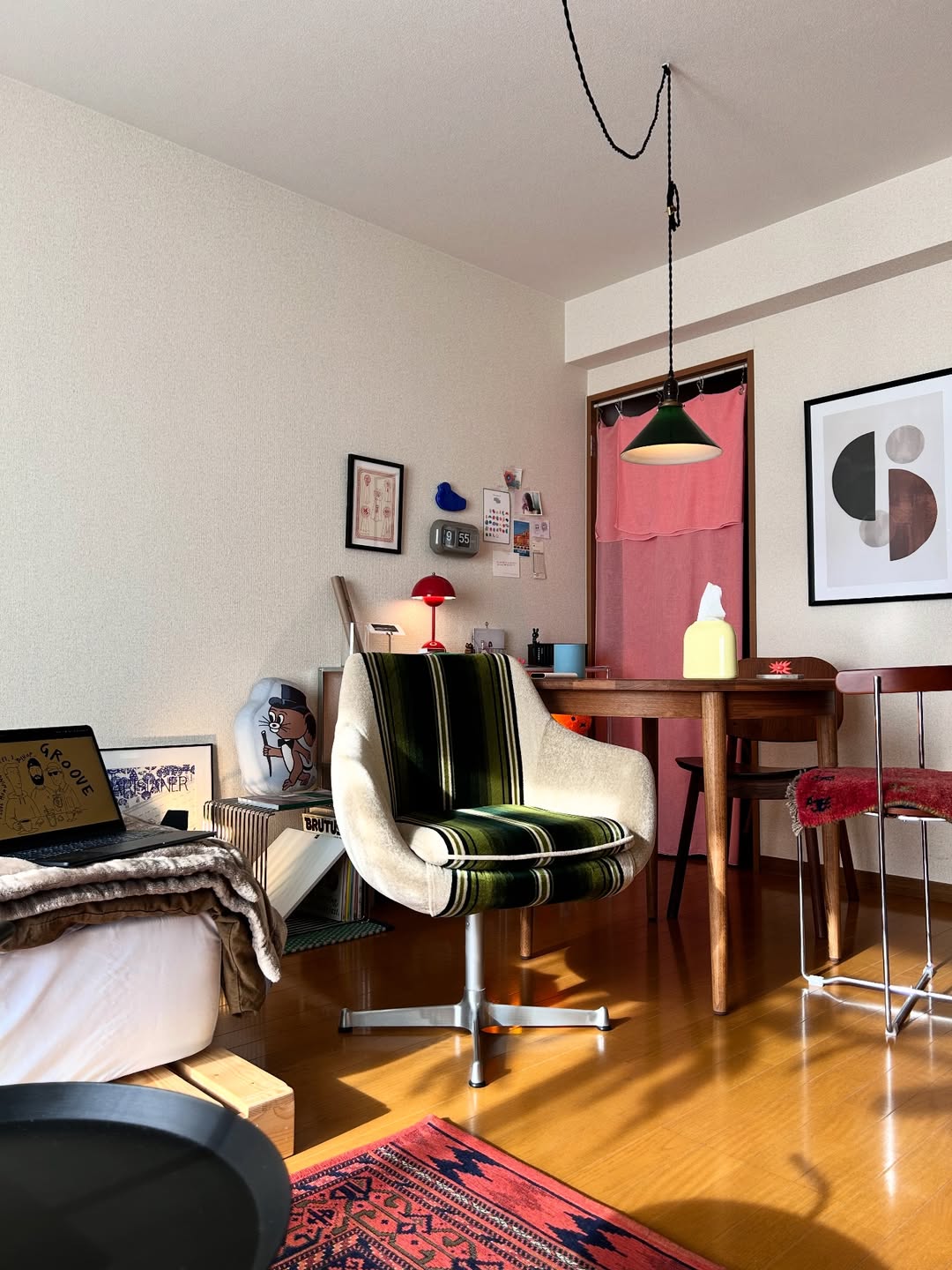 「寝に帰るだけ」だったお部屋を、どの角度から見ても「好きが詰まっている空間」に。ヴィンテージなものとモダンなもの、妥協せず選んだお気に入りのアイテムを組み合わせてつくられている、一人暮らしの1Kを拝見しました。