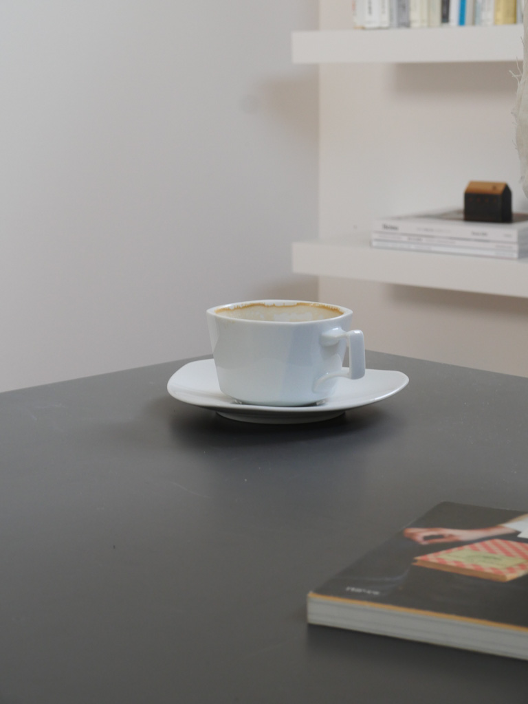 シンプルながら造形が美しい、1980年代のRosenthal(ローゼンタール)のカップ&ソーサーに出会いました。「カップとソーサーは丸いもの」という概念を打ち破るようなデザイン。ソーサーの三角形や、カップの幾何学的なライン……。シンプルでありながら、どこか凛とした美しさを感じるアイテムです。
