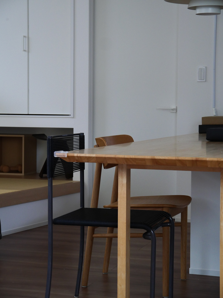 木目ばかりで少し退屈だった空間に、ブラックのラインが加わることで、部屋がパッと洗練され、様々な角度からダイニングを見る光景がすごく好きになりました。