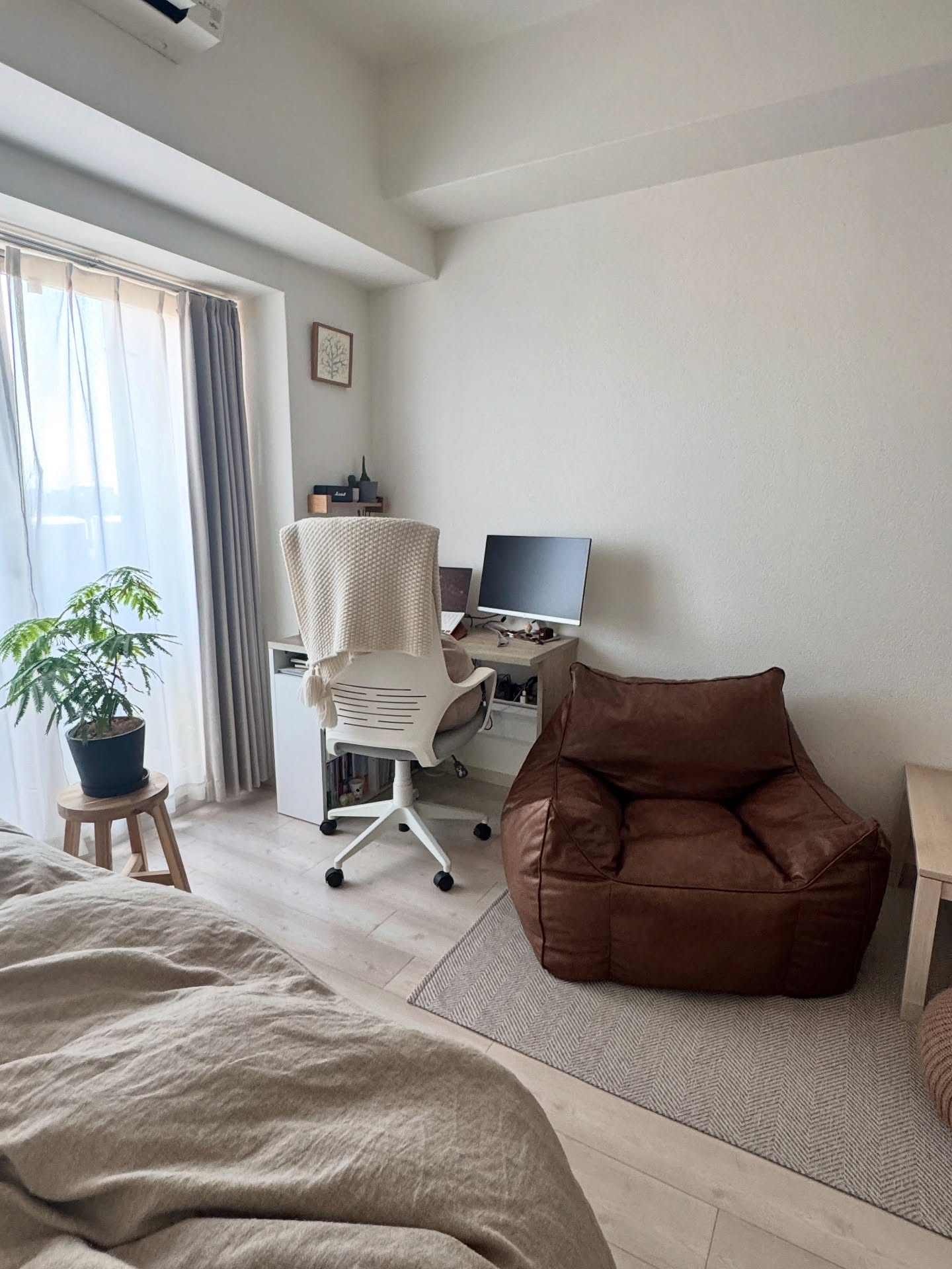 賃貸の小さな8畳の空間も、家具の配置や収納の工夫ですっきりと住みこなしていらっしゃった fuku さん。