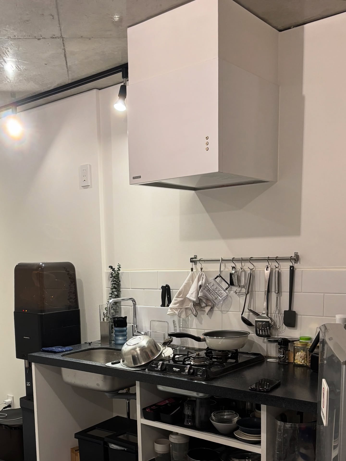 「かっこいい女の人が住む部屋」をテーマに、三角形のデザイナーズワンルームをモノトーンで統一し、少ない持ち物で快適に暮らしていらっしゃった KOZUE さん。小さな6畳をクールに住みこなす、素敵なお部屋でした。