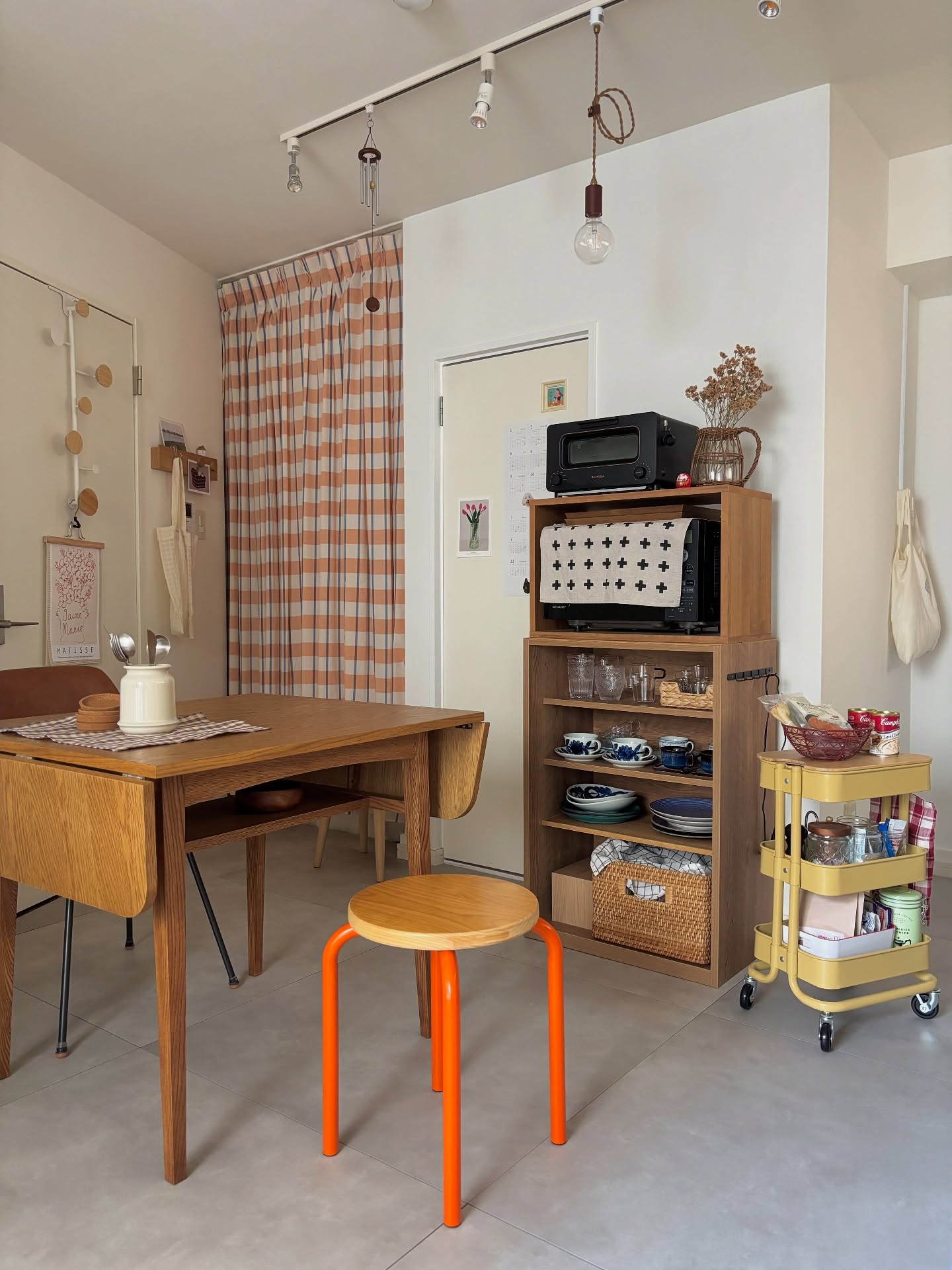 築56年のリノベーションのお部屋。家具の配置を工夫したり、ところどころ自分で手を加えながらつくられた、等身大で居心地の良い一人暮らしの1LDKを拝見しました。
