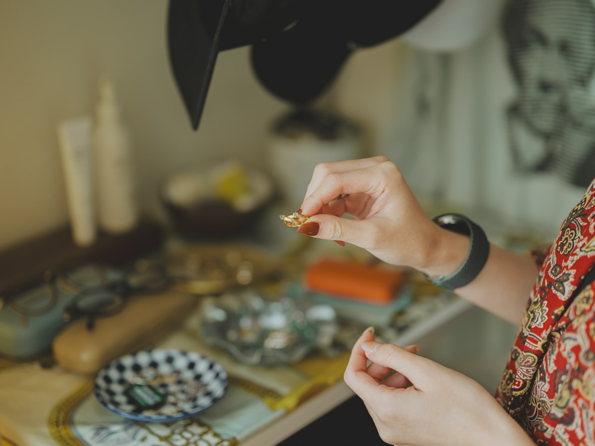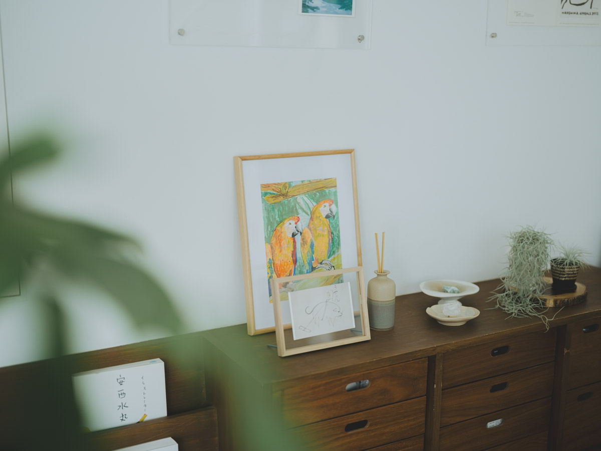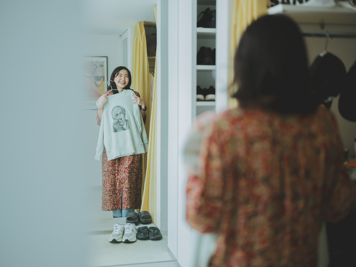 「空間づくりでは『情報量を統一する』ことを意識しています。デザイナーの職業病かもしれませんが、モノの量だけでなく、モノ同士の密度、つまり余白で調整できないかを考えるんです」 例えば、壁の余白が気になったスペースには、壁掛けの鏡や照明を配置。お気に入りのアイテムを飾りながらも空間がすっきりと調和しているのは、Shioriさんならではの感覚です。