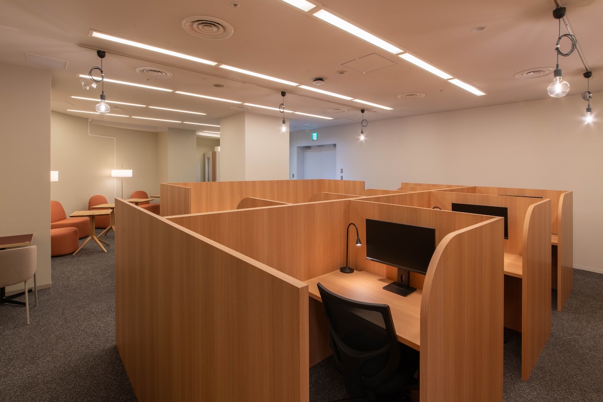 池田さん: 地下階のコワーキングスペースは、仕事にしっかり集中できるよう設計されています。