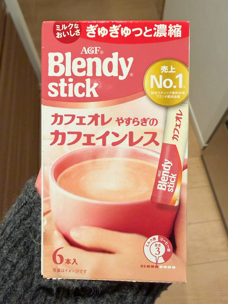 これまで、毎朝エスプレッソマシンでカフェラテを作って飲んでいましたが、現在妊娠中で、カフェインレスの生活へ。制限の多い妊婦生活で、せっかくだからいつも買わないカフェインレスのスティックコーヒーを楽しもうと思い購入。