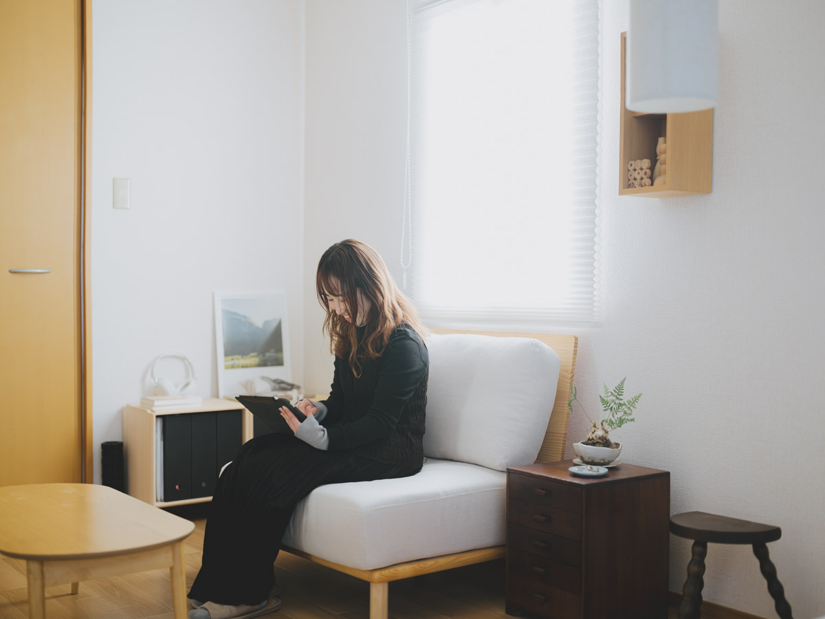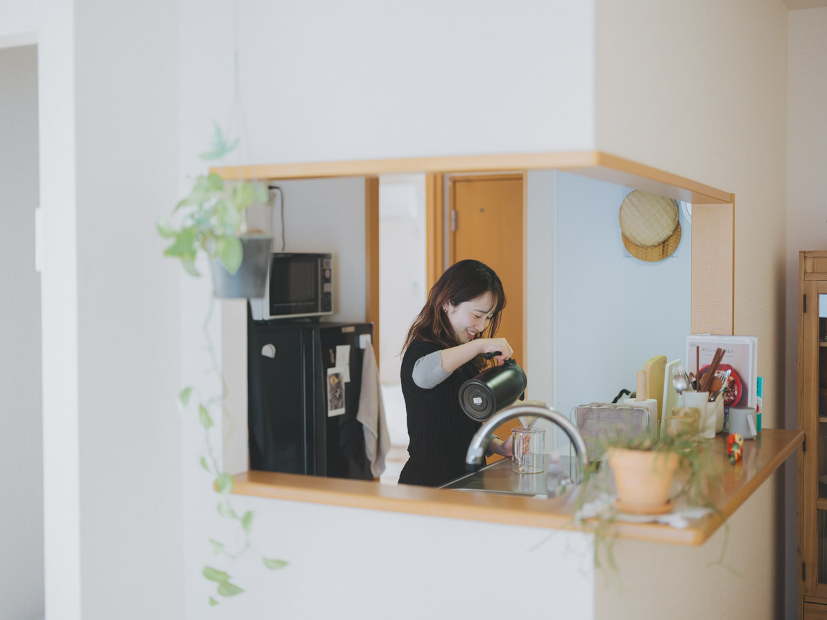 お互いに一人暮らしからの同棲スタートだったというお二人。それぞれ異なる、お仕事柄、生活リズムが異なることもしばしばあります。 「ずっと一緒だと息が詰まってしまうかもしれない。だからこそ、寝室も兼ねた個室を持ち、共有スペースであるリビングで顔を合わせるシェアハウスのような距離感が、私たちにはちょうどいいと思ったんです」。