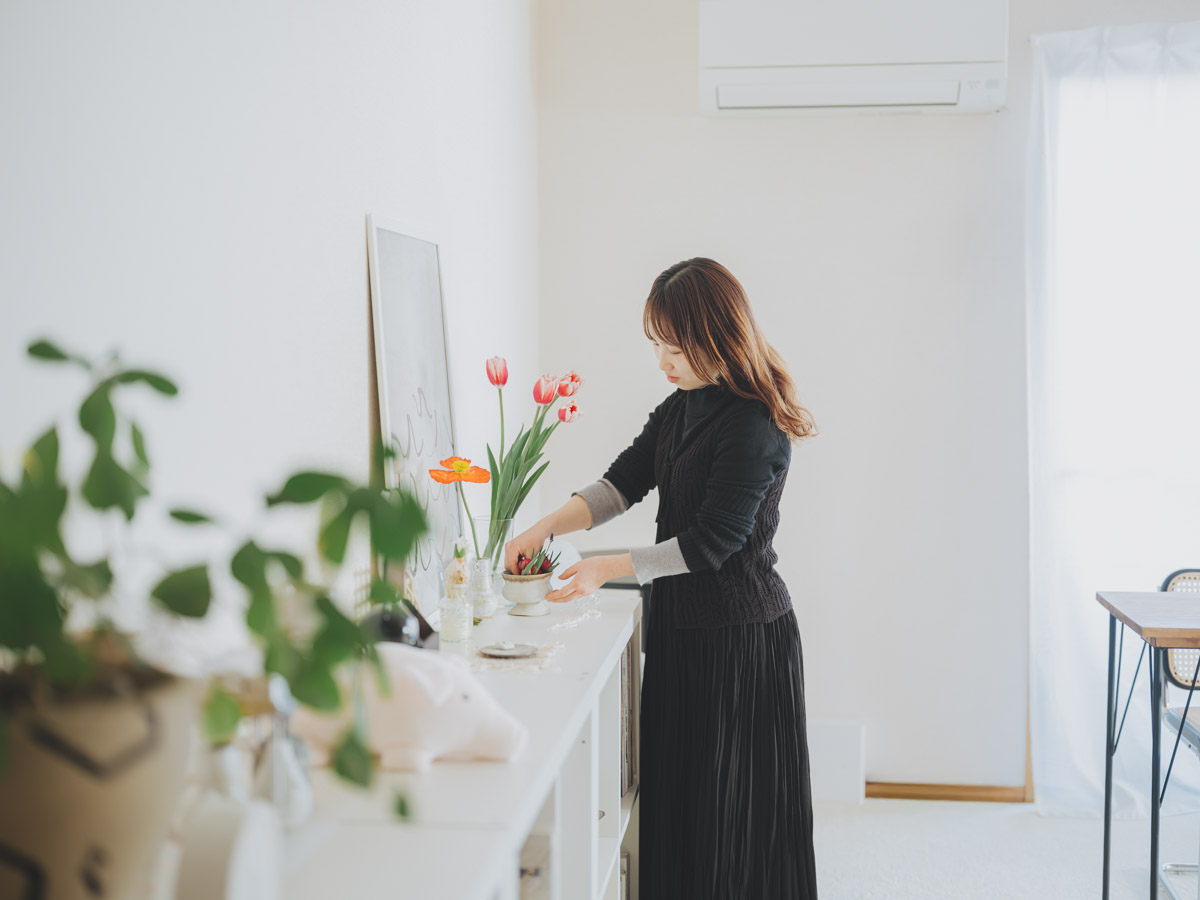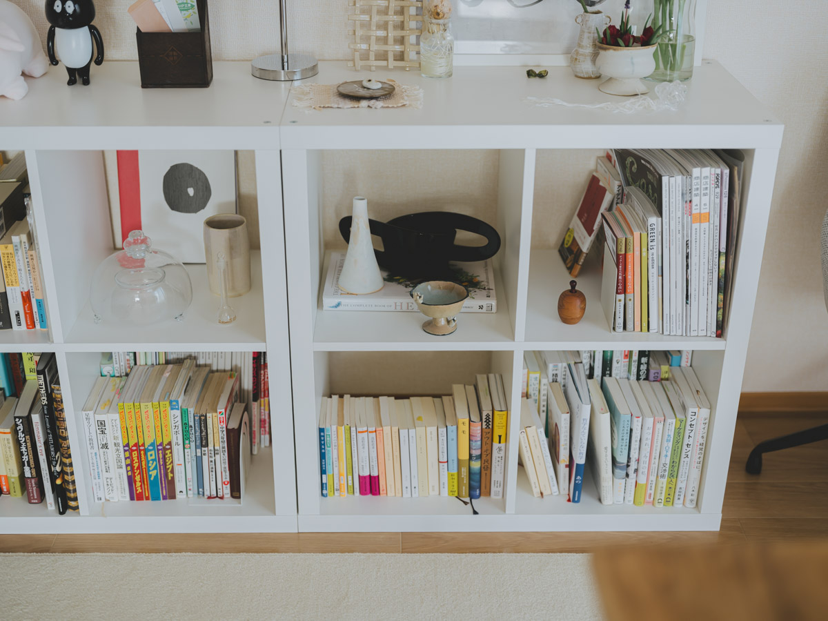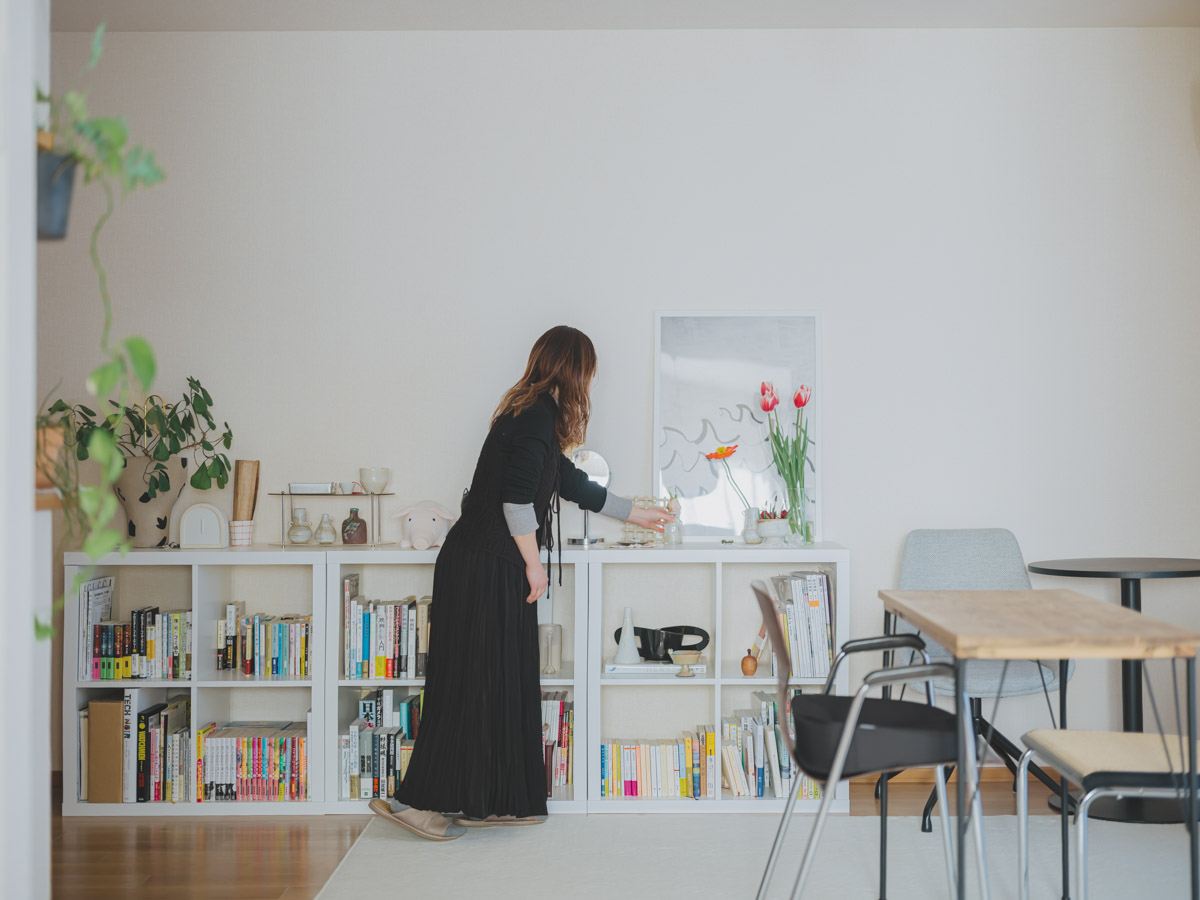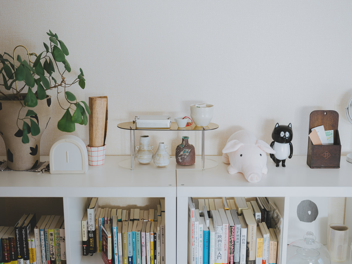 野田さんのお部屋を見渡して印象的なのが、まるでギャラリーのように整えられたディスプレイコーナーの数々です。 「見せる収納が好きなので、雑貨を配置するバランスにはこだわっています。一箇所にものを集中して置くとまとまりが悪くなるので、なるべく部屋全体に散りばめるように意識しています」。