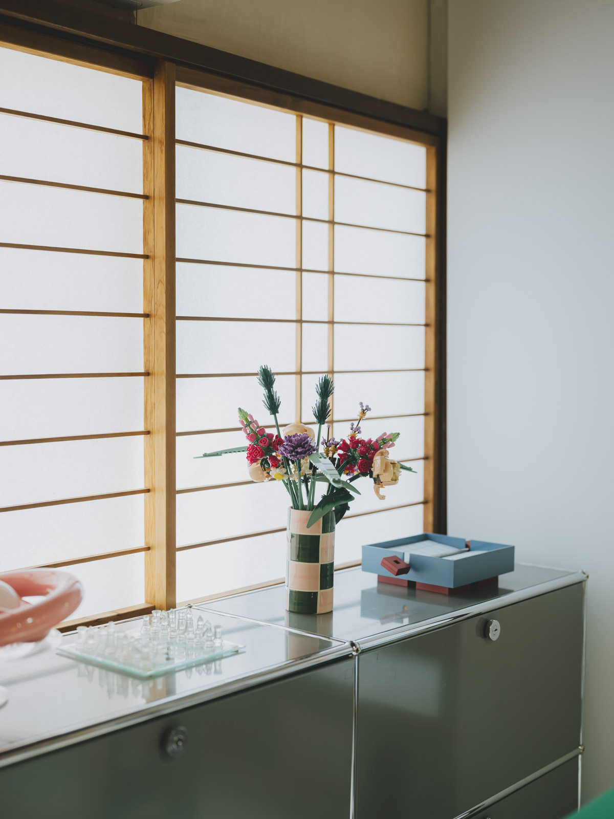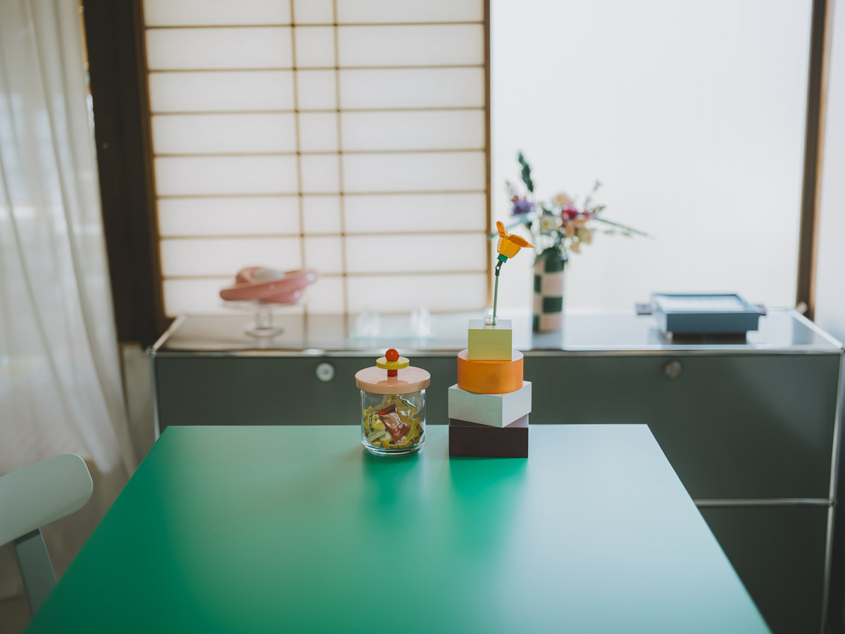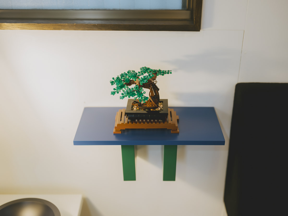 棚には「深夜に一人で作った」というレゴの盆栽も飾られています。季節に合わせて桜のパーツに付け替えるなど、細部まで遊び心と愛着を詰め込んだ、目でも楽しめる暮らしが広がっています。