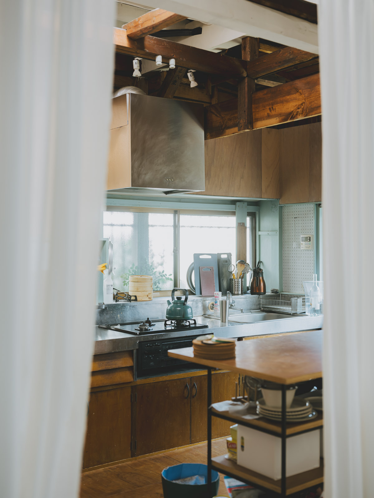 「冬は本当に寒くて……暖房効率を少しでも上げるために仕切りました。キッチン側は元の日本家屋のままなので、冬場はとにかく着込んで料理しています」