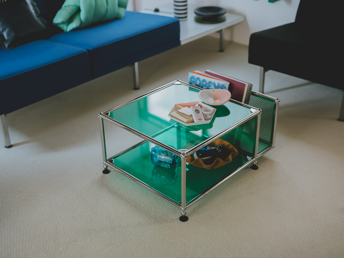 「青と緑が好きなので、一番好きな色味のこれを選びました。友人を招いてご飯やゲームをすることが多いので、みんなで囲めるこのサイズ感が気に入っています」