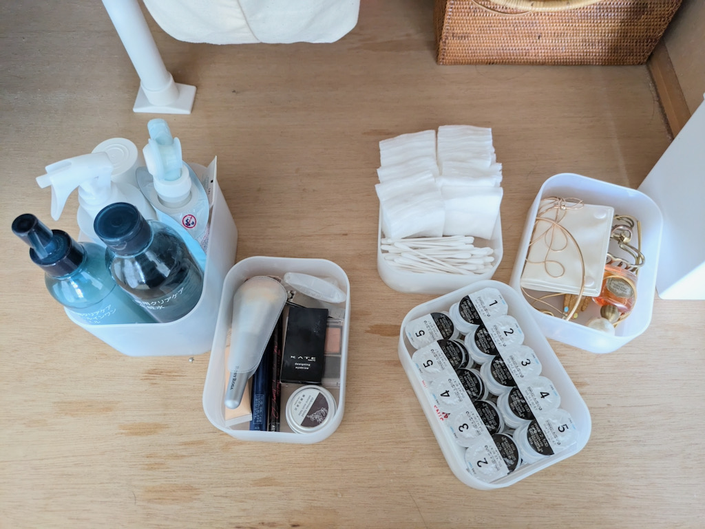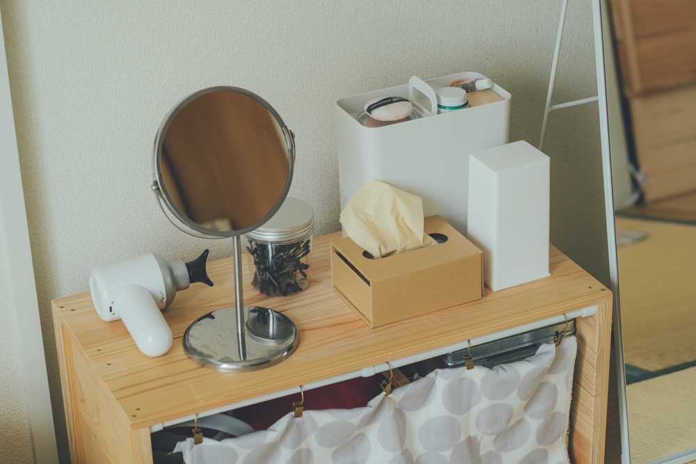 さっと身支度が終えられ、いつでも整ったメイクコーナーがつくりたい。大きなドレッサーなど専用の家具を置かなくてもシンプルに整う、メイク道具のしまい方、身支度スペースのつくり方をまとめました。