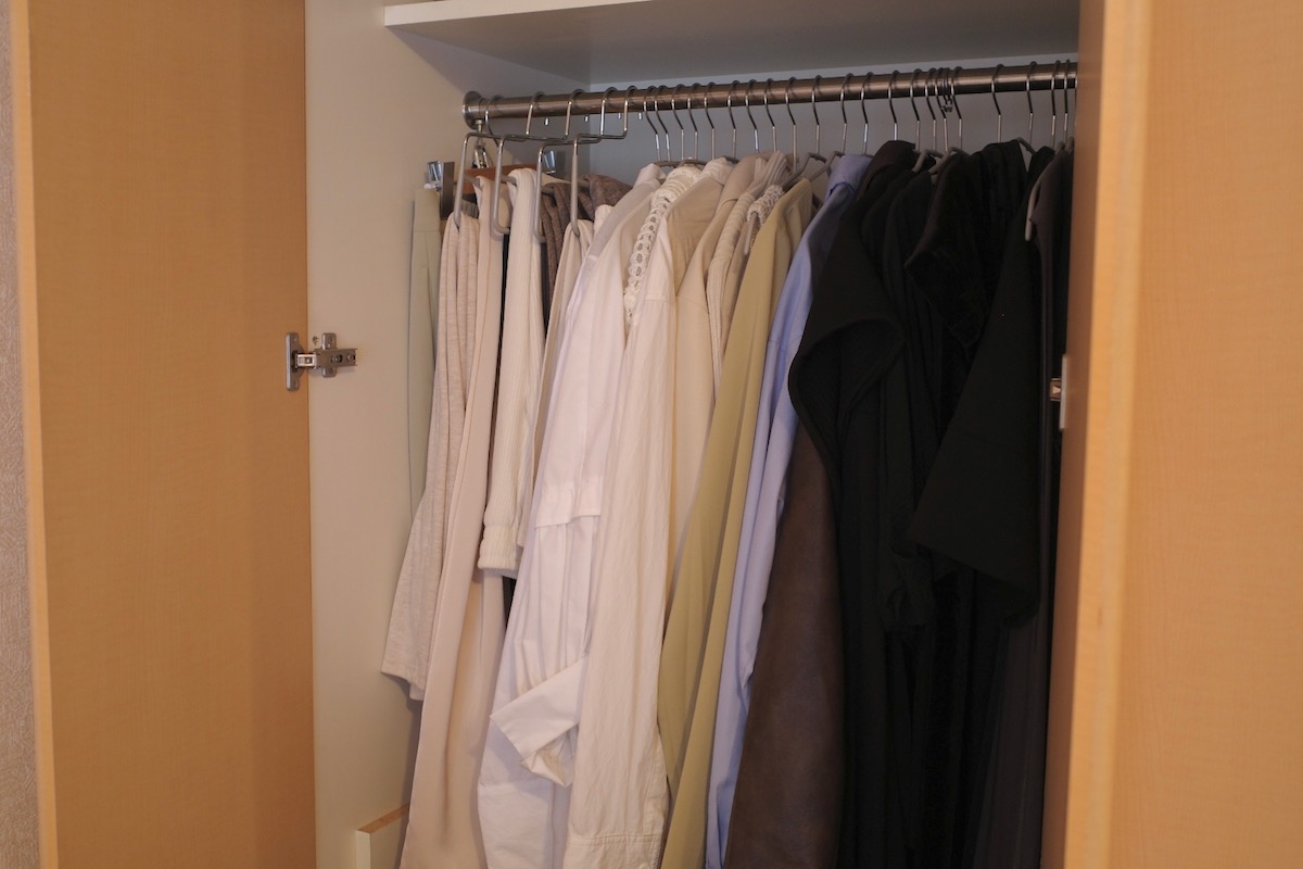 クローゼットを整えるとき、『買い足す』ことを考えます。まずは手放すことから始める人が多いですが、なんとなく着続けているトップスを処分しても、一時的には整うもののリバウンドしやすいと感じています。
