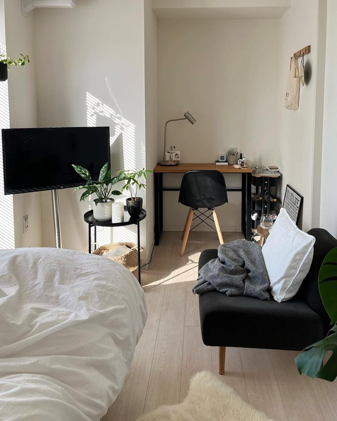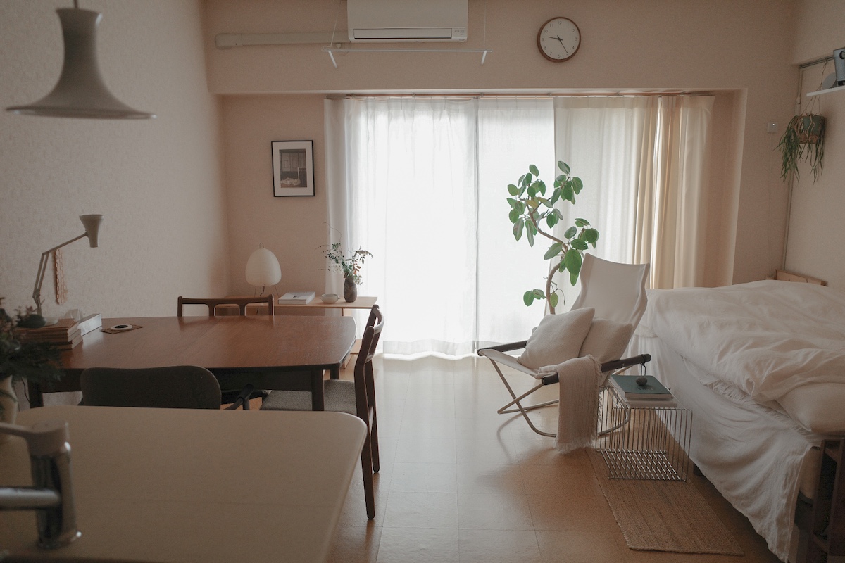 賃貸の小さな1K・ワンルームでも、リラックスして過ごすためのスペースをつくるにはどうしたらいい?お気に入りのアイテムを集めて落ち着いて過ごすスペースをつくっていらっしゃる、おしゃれなインテリア実例をまとめました。