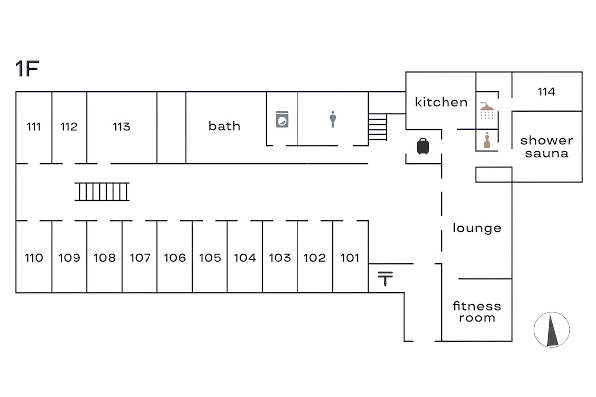 goodroom が運営する、サウナやワークラウンジを備えたコリビングレジデンス「goodroom residence」。