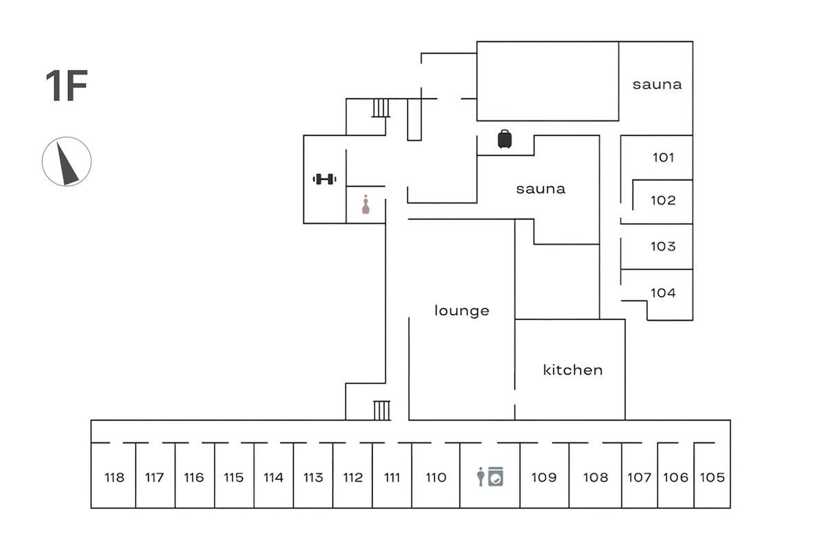 「goodroom residence」とは、goodroomが運営する、サウナやワークラウンジのあるコリビングレジデンスです。充実した共用施設を自由に利用しながら、個室で自分らしく生活できます。