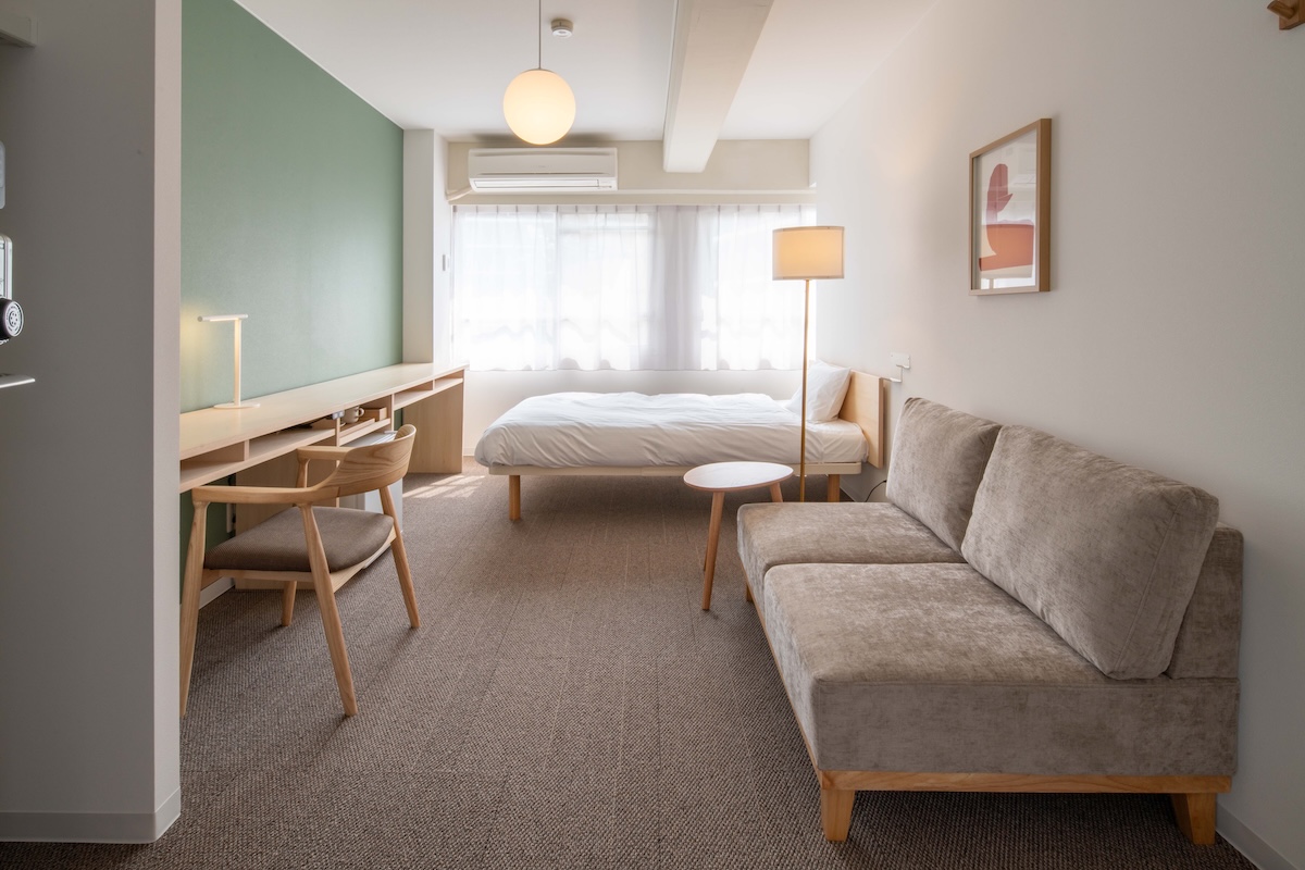 家具・家電が揃っているため、新たに購入する必要がありません。また、広々としたワークラウンジからサウナやカフェまで、賃貸とは違い共有部が充実しているため、仕事・プライベート共にいろんな過ごし方が実現できます。